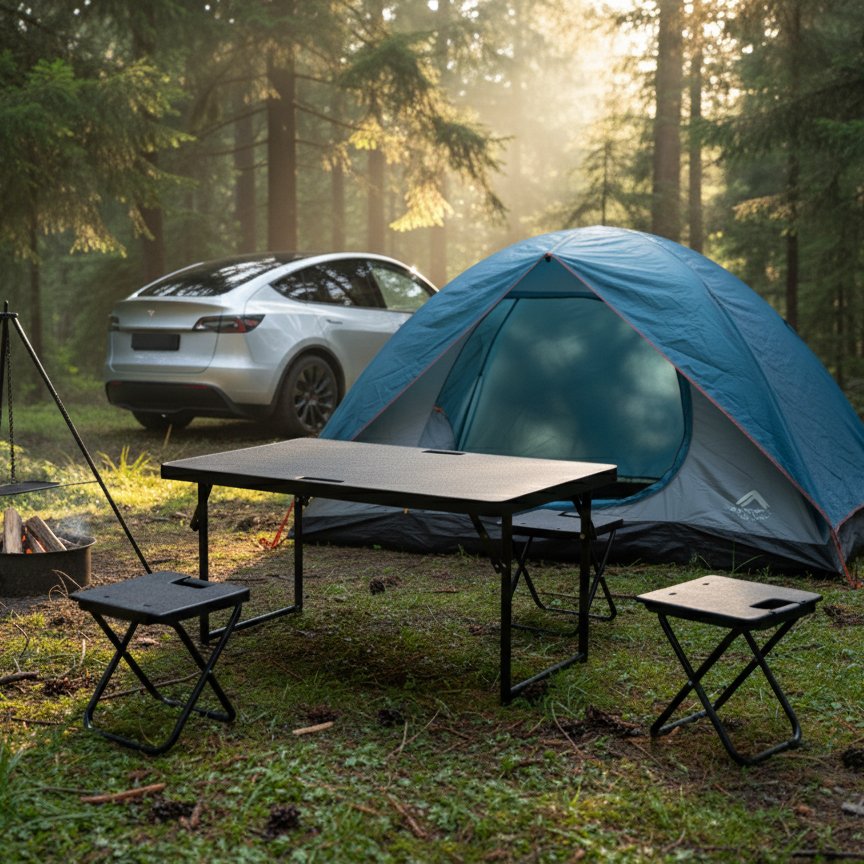Custom-designed for Tesla, our car trunk folding table and chairs maximize storage while protecting your car’s interior.